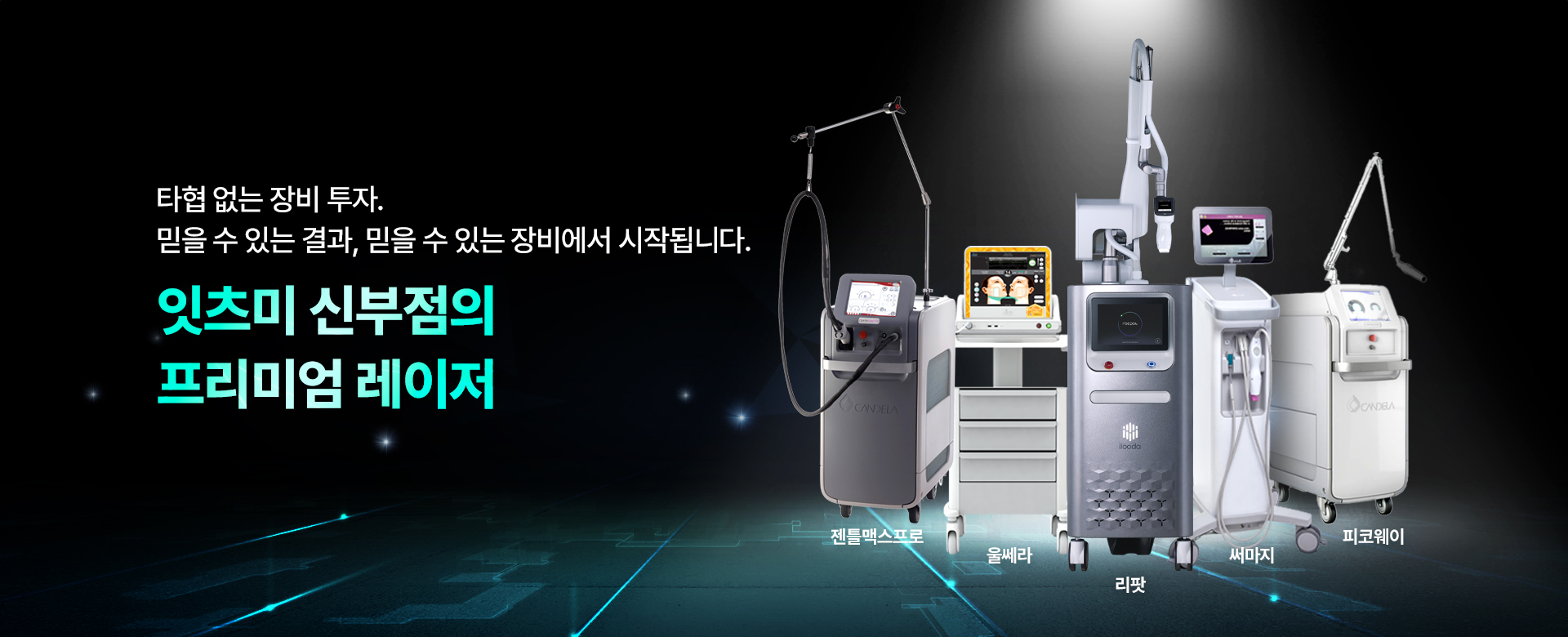 혈관,색소,모공,탄력 등 피부 전반에 걸친 다양한 고민에 맞춰 개선에 효과적인 장비
